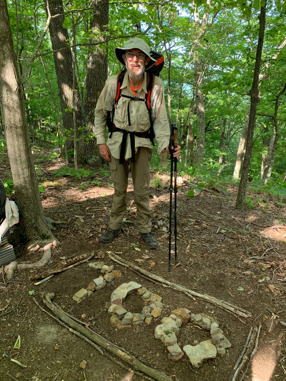 Day 120 7/16/2019. Riga Shelter. Mile1505. Good weather. Some tough trail. Photo of this old hiker taken a couple days ago by Brendan (Zombie, 14) on CT mountain top.