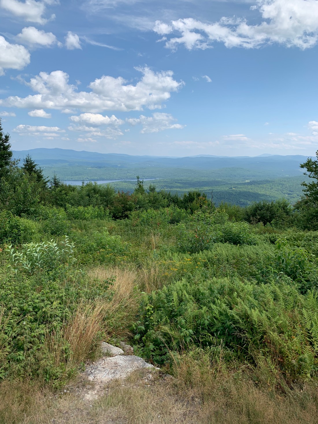 Day 139. 8/4/2019. Trapper John Shelter. Mile 1767. Great hiking weather: low 70’s and low humidity, but that doesn’t mean the hiking was easy. It wasn’t. First a long hike up Moose Mountain, followed by a steep descent and then a climb up another. My legs are more tired than usual; I may need to cut back on mileage. Days like today are not sustainable. View from Moose Mountain, NH summit.
